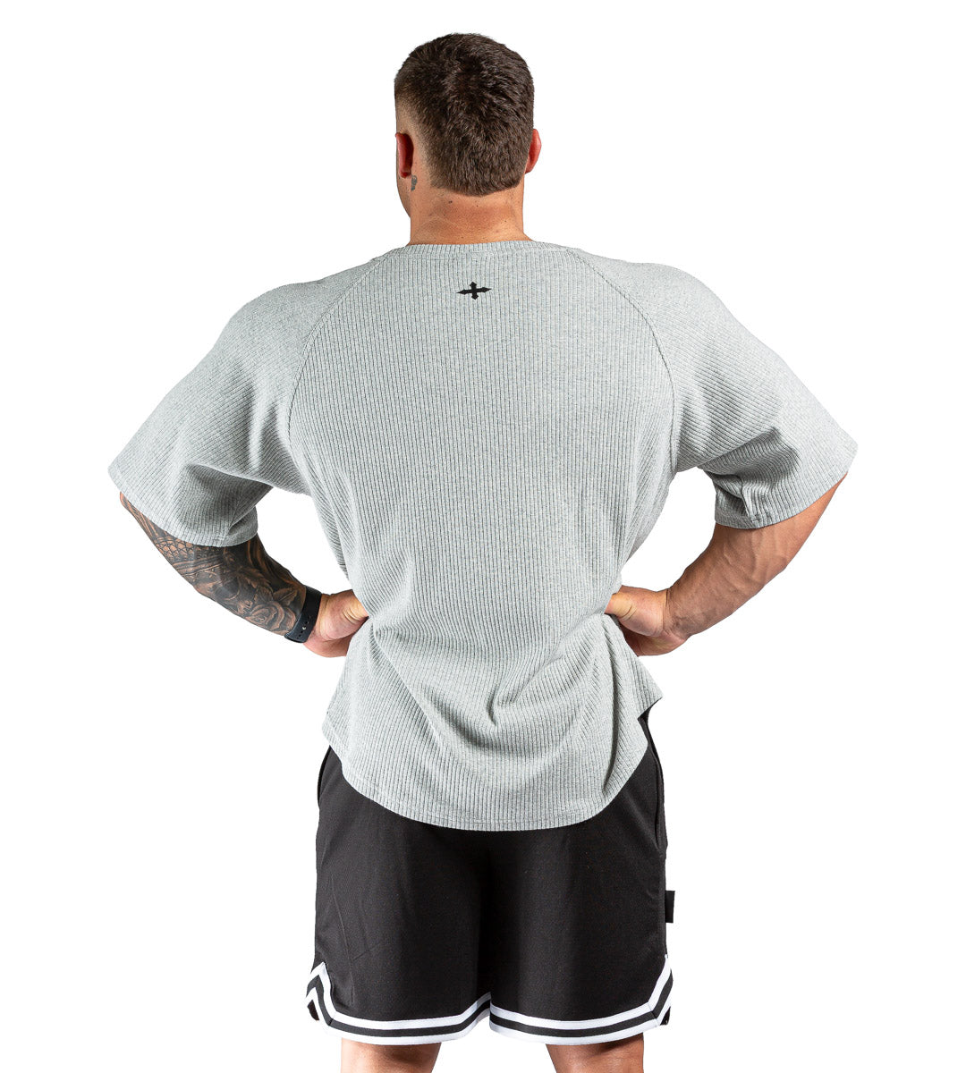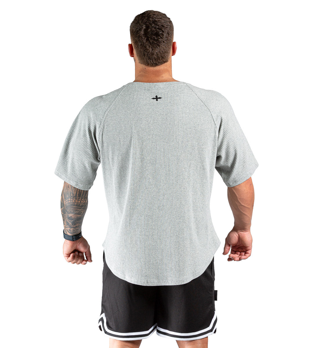 With its relaxed, oversized fit and curved hem, this raglan-cut training top brings a commanding presence to the gym floor. Made from a durable yet breathable cotton blend, it features a vintage debossed pinstripe surface with just the right amount of stretch - soft to the touch, rugged in feel.
