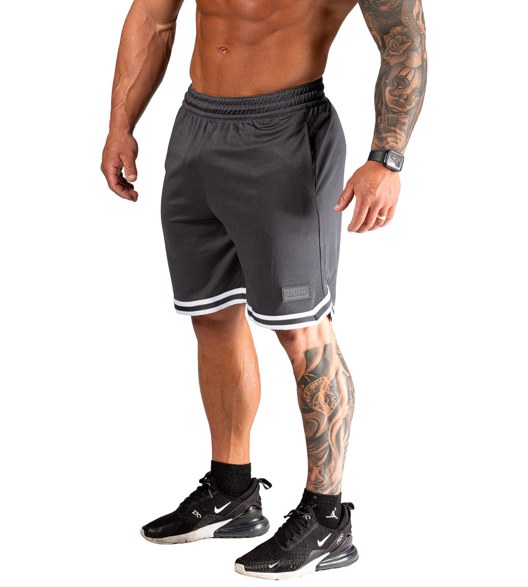 Designed with an 8" (20cm) inseam and rugged mesh fabric, these basketball-inspired gym shorts offer breathability and freedom of movement.