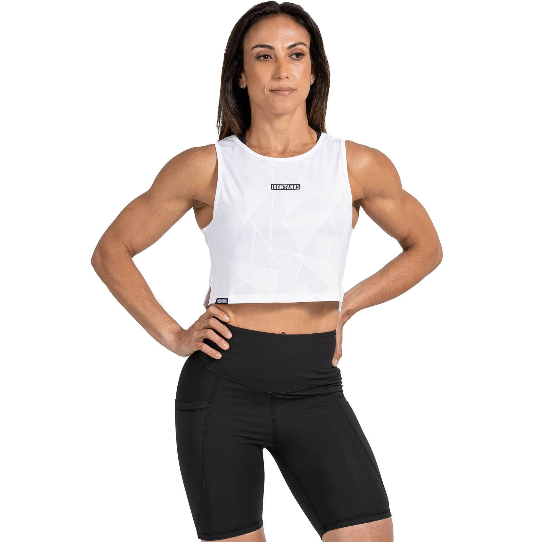 The Sabre Crop Tank series is constructed from a performance based high-tech polymer, with a unique and stunning geometric design that exudes confidence.
