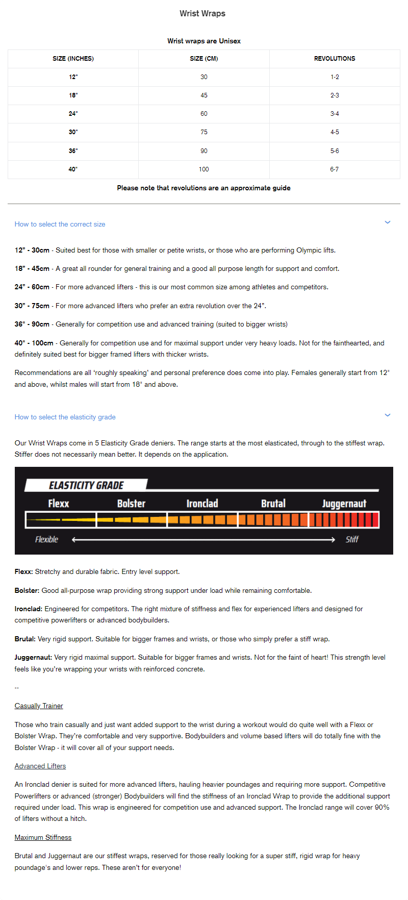 The Bolster (Level 2) Wrist Wrap range is constructed from a heavy blend cotton-elastane fabric for maximum support and longevity. You can evidently see the workmanship in our wraps compared to the poorly made varieties that are rampant online - ours are built to last!