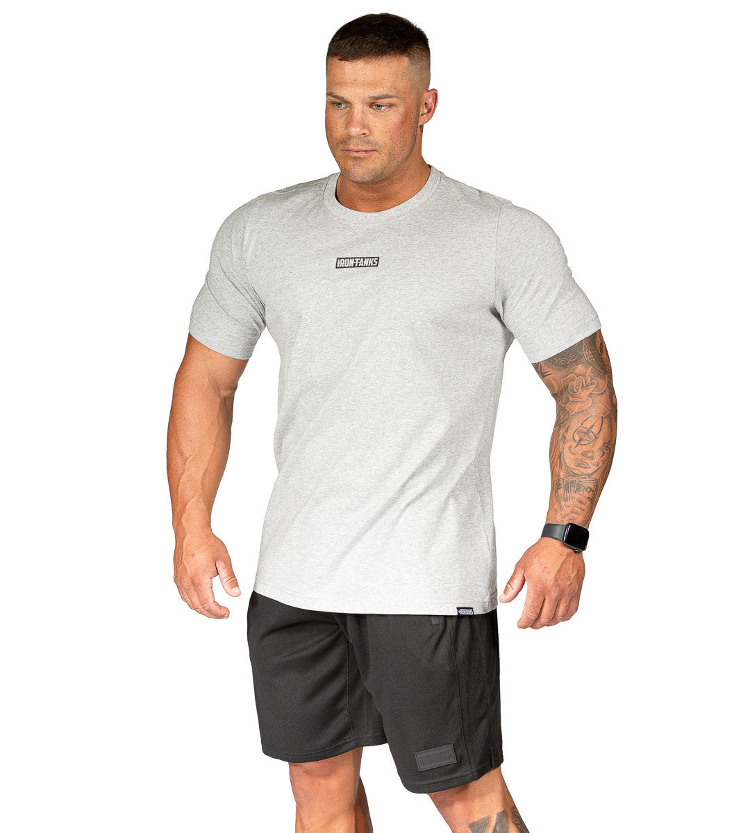 The discreet Iron Tanks block logo adds a touch of style, while the 4-way stretch cotton fabric ensures unrestricted movement, making it suitable for all body shapes and training applications.