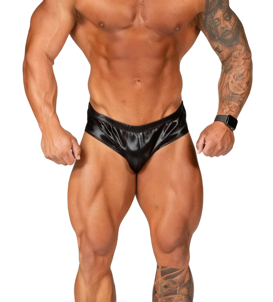 Elevate your competition game and showcase your physique in the best light with our perfectly crafted posing suit. With a sleek, all-black design and a width of 4.5" (11.4 cm) at the hips, these trunks meet the strict competition requirements.
